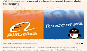 英国《金融时报》9月19日报道,以阿里巴巴和腾讯为代表的5家机构拒绝向百行征信提供个人征信数据。文章评论称央行发起成立百行征信,并让新金融科技巨头成为百行征信公司的股东,试图打破科技巨头对信贷数据的寡头垄断,但是新的股权计划并没有为合作铺平道路。